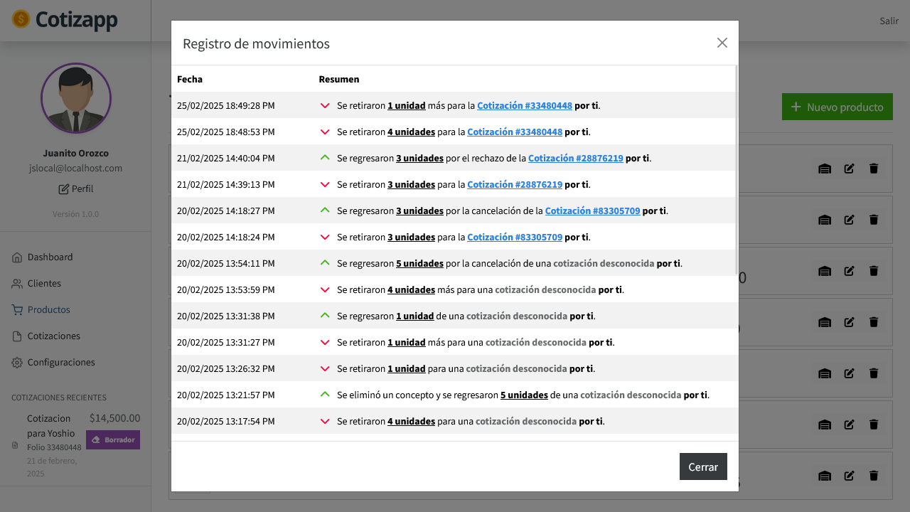 ✅ Historial y seguimiento de cada cotización 🗂️
