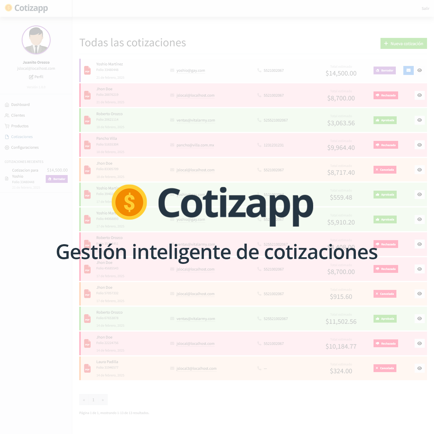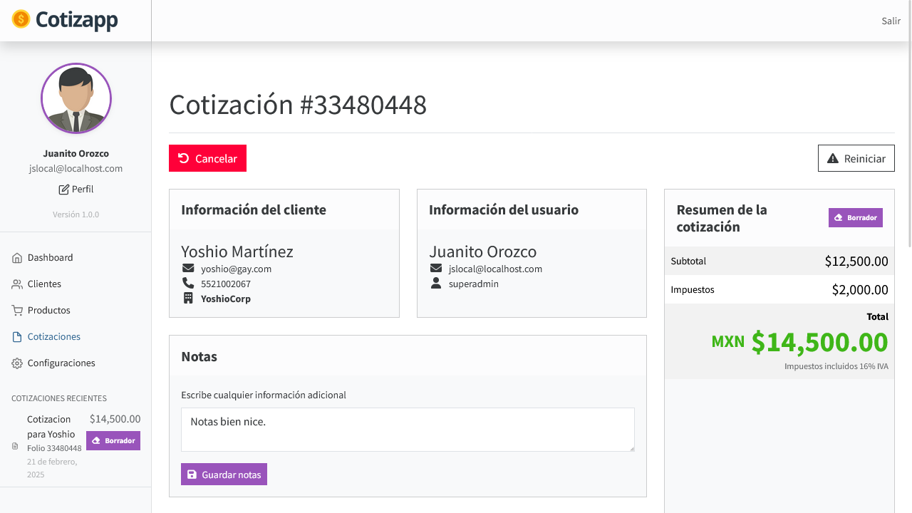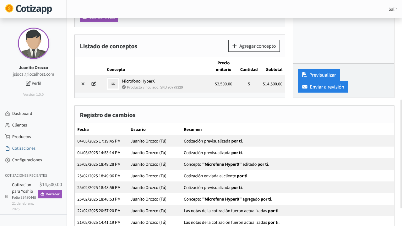 Optimiza tu proceso de ventas con nuestro sistema de cotizaciones 🚀. Agiliza la creación, envío y gestión de cotizaciones con funciones clave:
