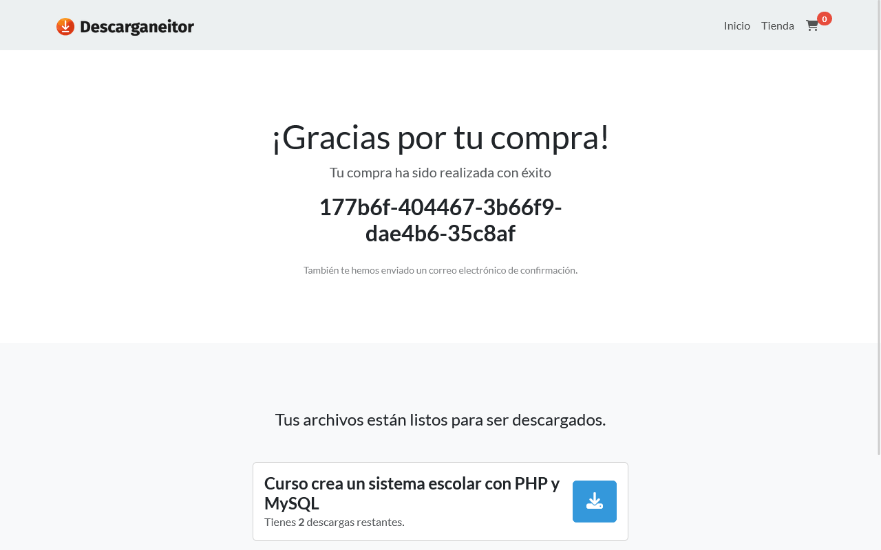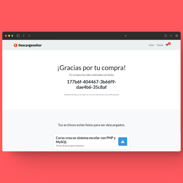 Este es el código fuente para el sistema de descargas digitales, recuerda que es un proyecto educativo y no comercial, es decir es sencillo y no muy robusto, de igual manera es simplificado para su fácil entendimiento.