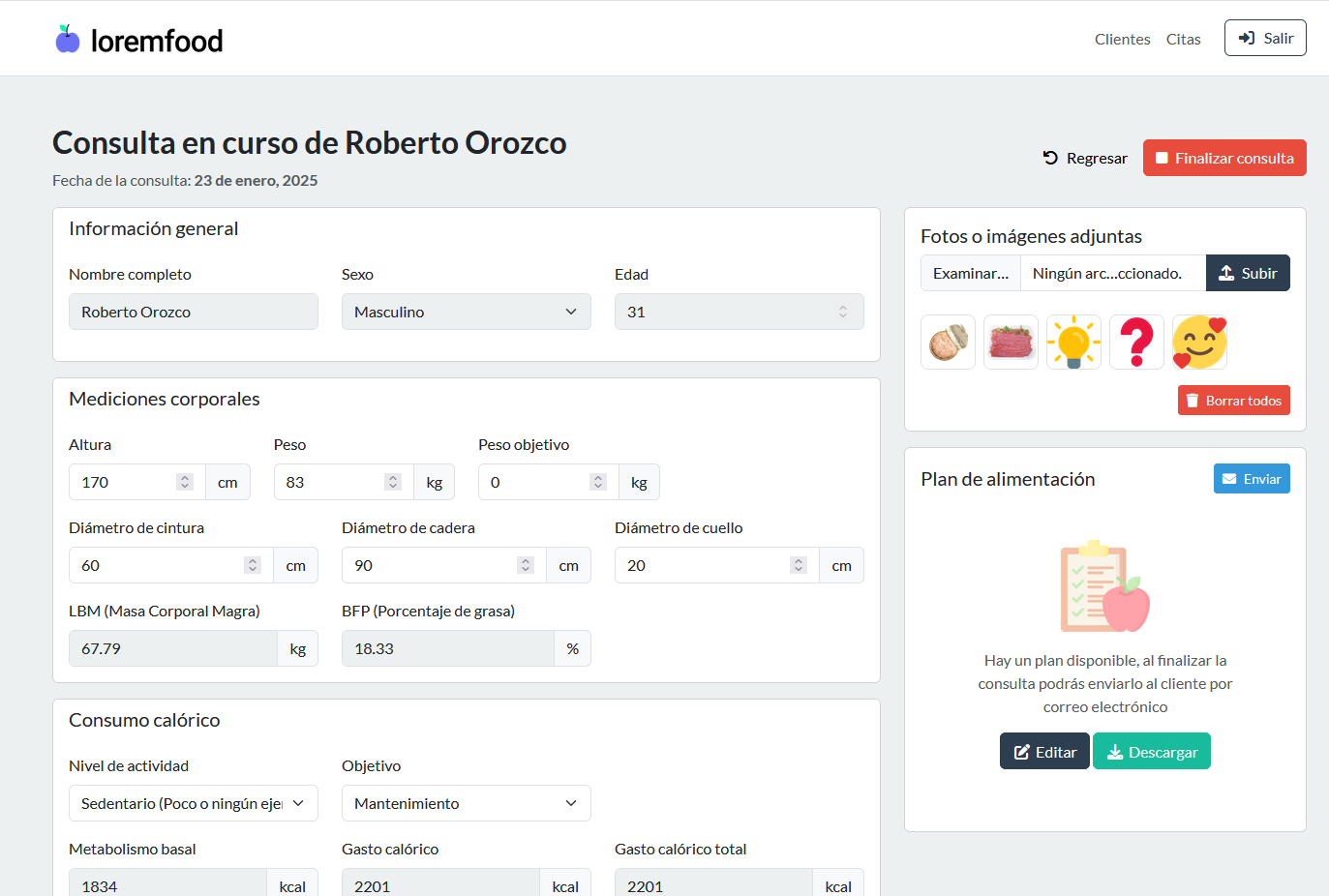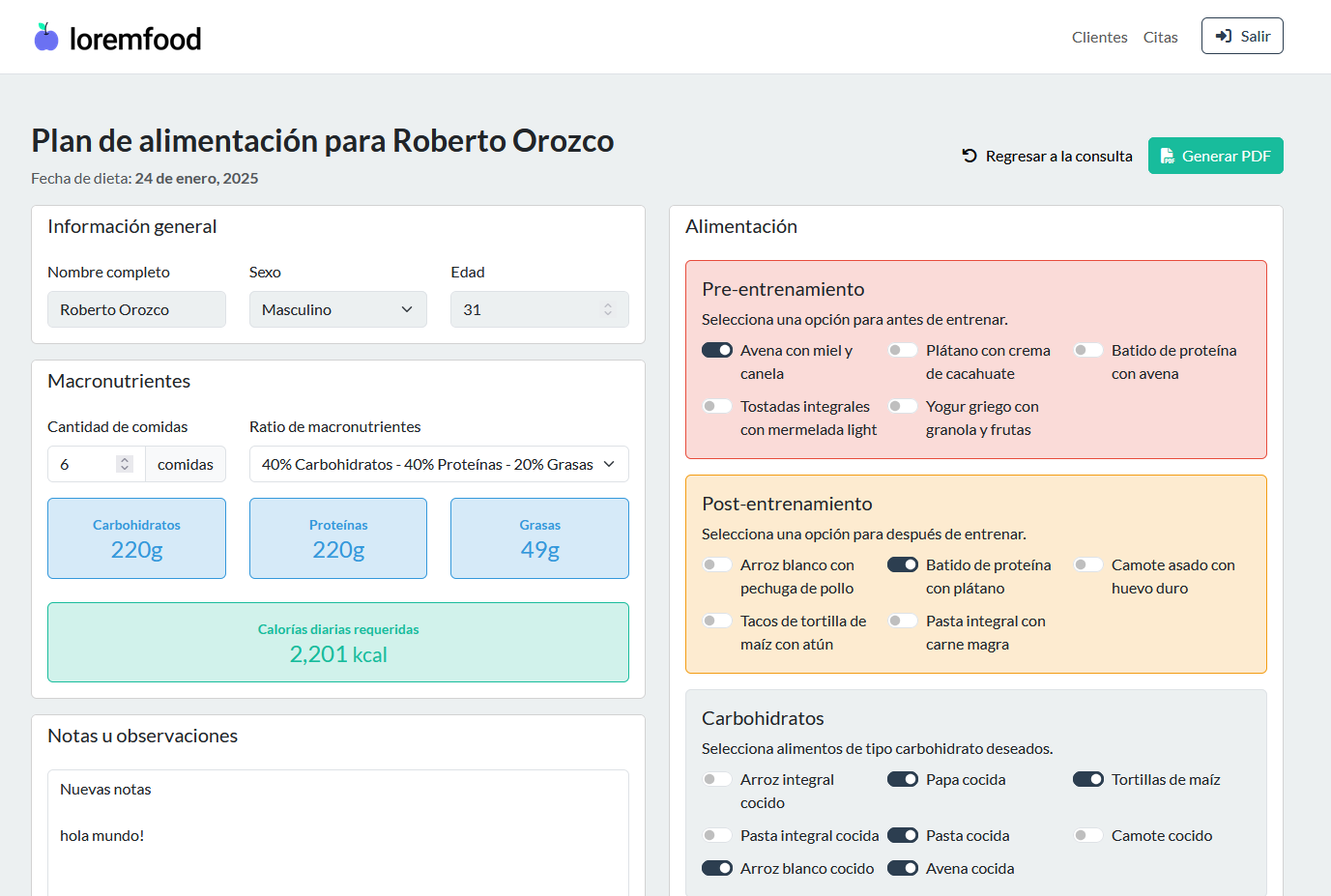 Este sistema está diseñado para cubrir cada aspecto de un servicio profesional de coaching nutricional: