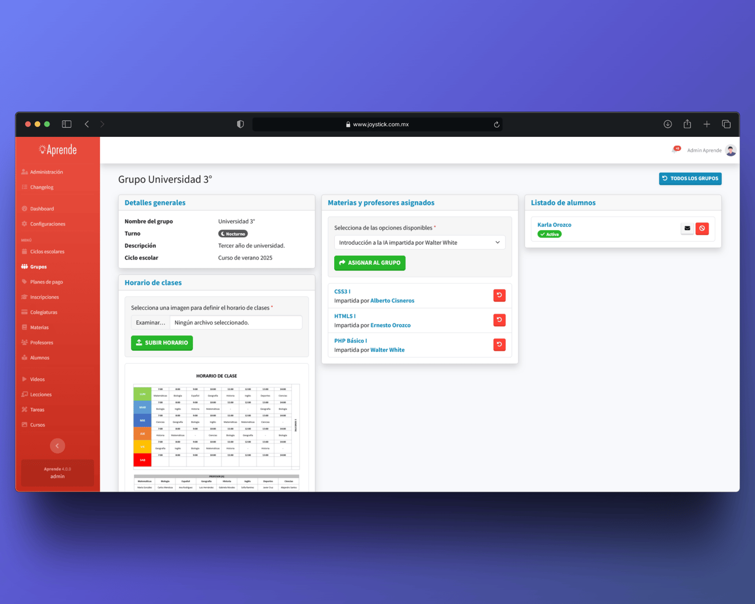 - 👩🏫 Administración de profesores, alumnos, grupos y materias.