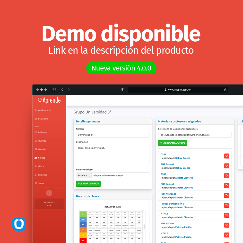 ✨ Por qué elegirlo: Pago único, control total de tu información, fácil de usar aún sin experiencia técnica y listo para crecer con tu institución.